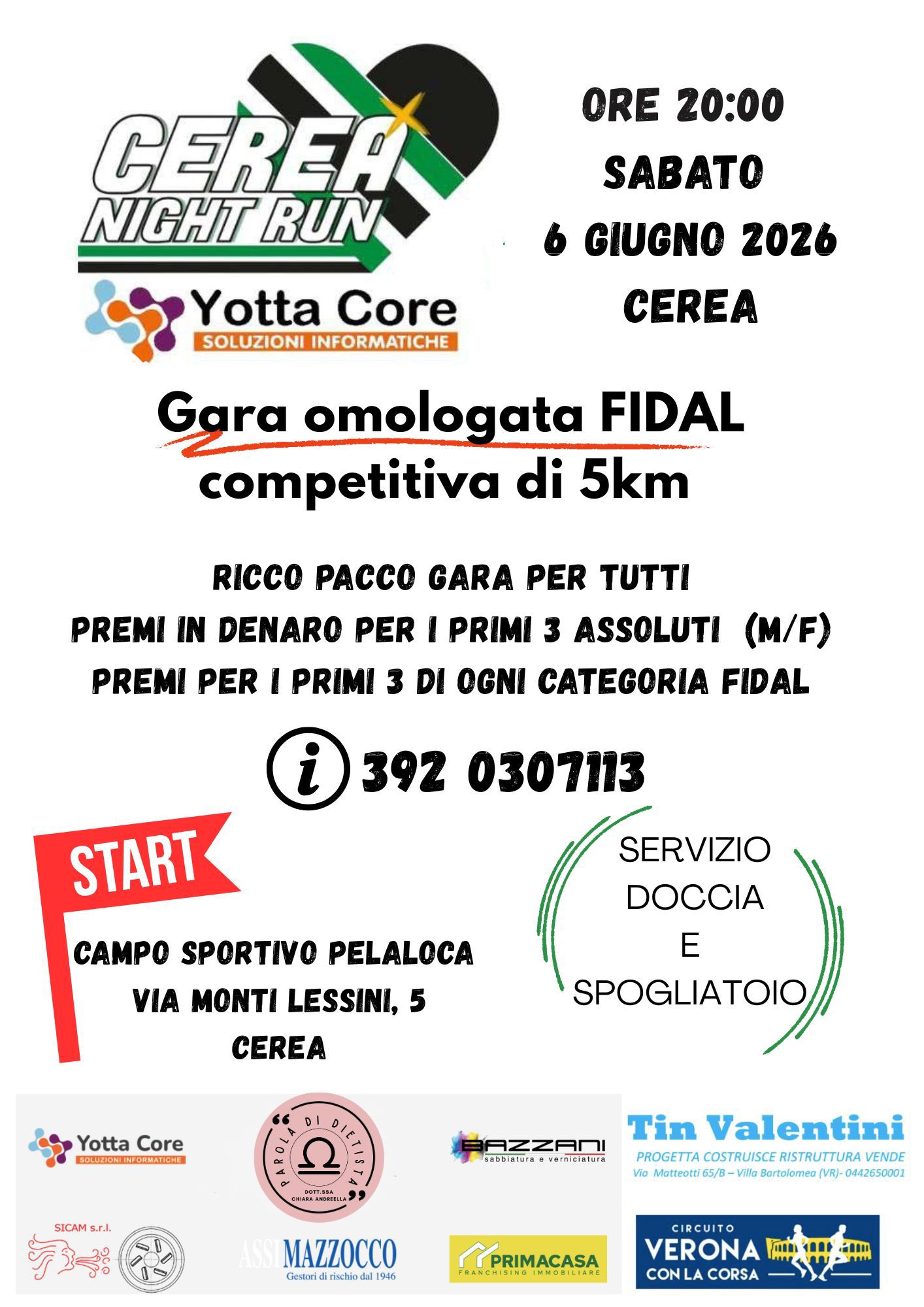 by Asd Atletica CereaASD ATLETICA CEREA, organizza l’evento 3° CEREA NIGHT RUN , gara competitiva di corsa su strada di 5 km omologati che avrà luogo il giorno 6 giugno 2026.