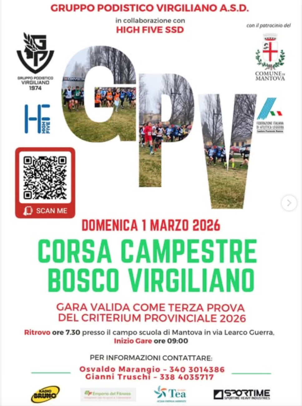 by G.P. VirgilianoL’A.S.D. Gruppo Podistico Virgiliano, con l’approvazione della FIDAL, Comitato Regionale Lombardo e Provinciale di Mantova, con il Patrocinio del Comune di Mantova, in collaborazione con HIGH FIVE S.S.D. A R. L., organizza la Corsa Campestre del Bosco Virgiliano, gara Regionale di Corsa Campestre, che si terrà a Mantova il 01 marzo 2026