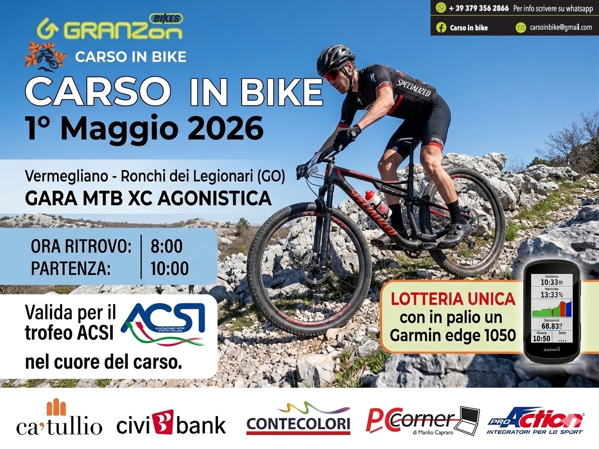 La Gara MTB “Carso in Bike 2026” è una manifestazione Acsi organizzata dal Team Granzon e da Davide Serafin.